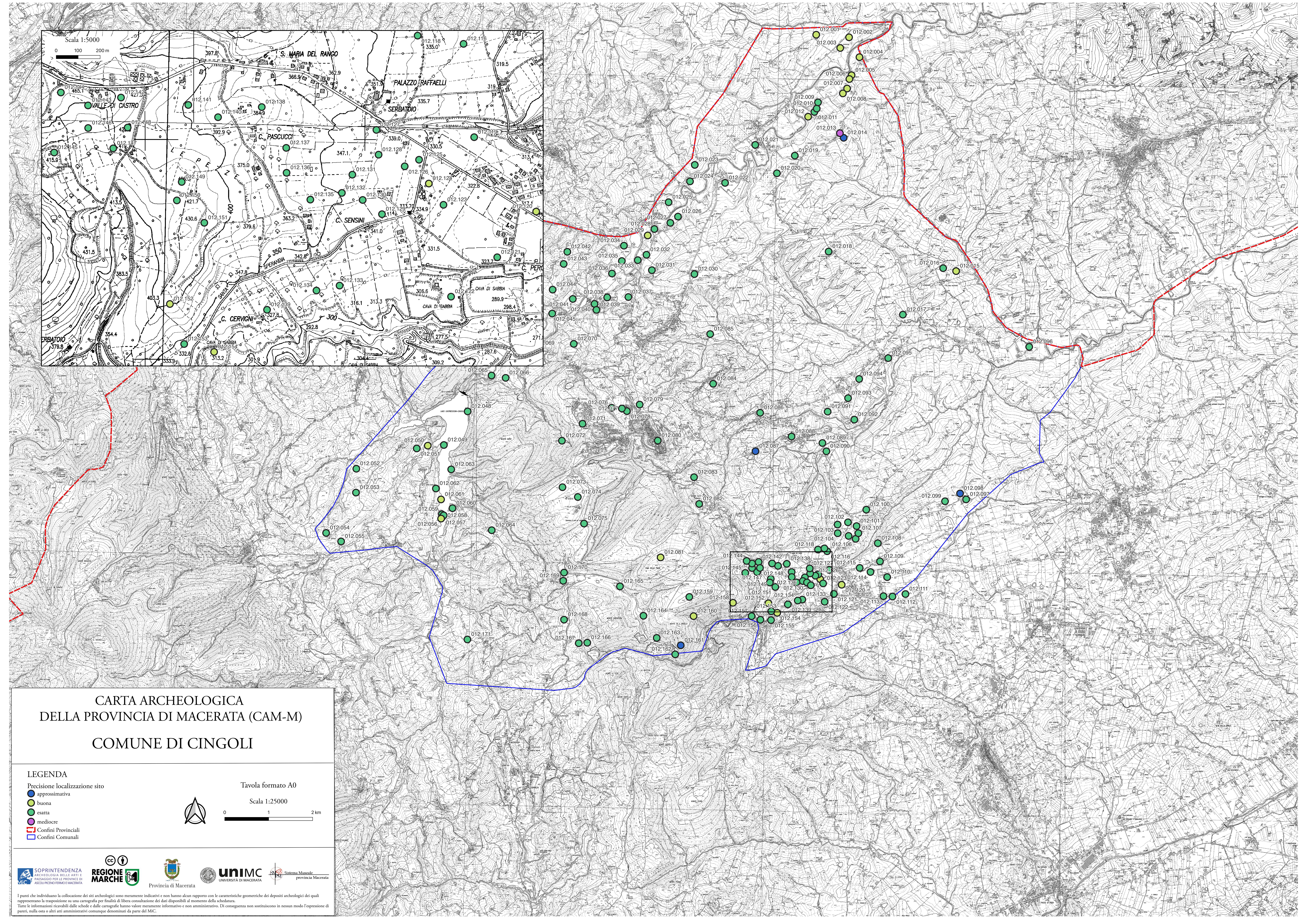 Dopo un approfondito lavoro di integrazione, aggiornamento e revisione scientifica ed editoriale, condotto in particolare dall’Università di Macerata, si è giunti all’attuale edizione in forma cartacea della Carta archeologica.