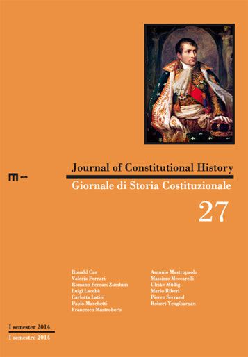 Arcioni Elisa, Bartole Sergio, Bluzma Valdis, Branco Francisco Castelo, De Cristofaro Ernesto, Domingues José, Fioravanti Marco, Komáromi László, Lacchè Luigi, Mura Salvatore, Nagy Noémi, Paixão Cristiano, Ridolfi Giorgio, Stolleis Michael, Sunnqvist Martn. 27 / I semestre 2014 Half-yearly journal/Rivista semestrale