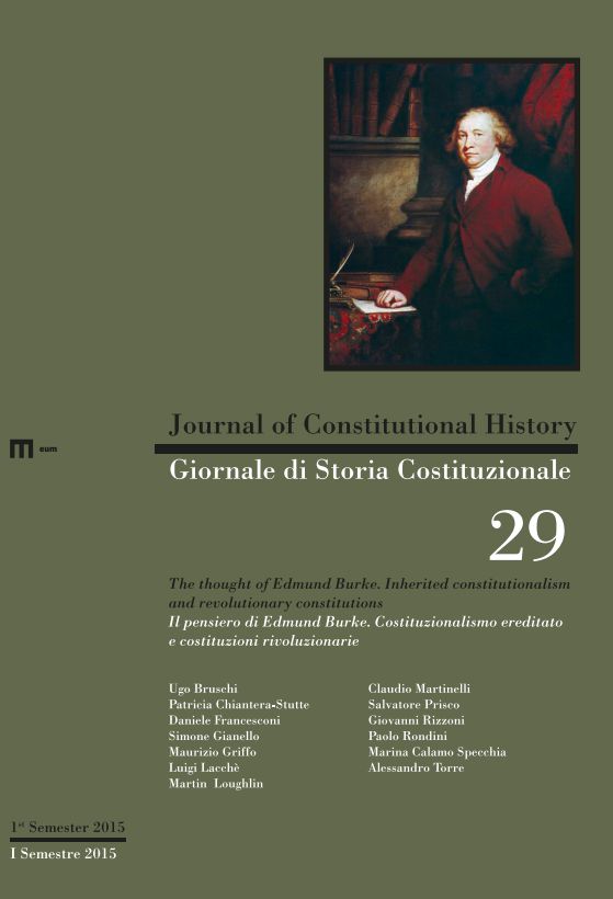 Colombo PaoloIl pensiero di Edmund Burke. Costituzionalismo ereditato e costituzioni rivoluzionarie / The thought of Edmund Burke. Inherited constitutionalism and revolutionary constitutions n. 29 / I semestre 2015 Half-yearly journal / Rivista semestrale