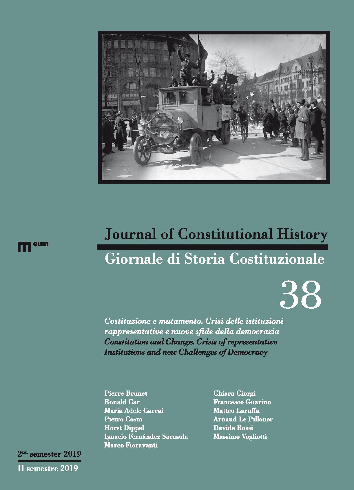 a cura di Giuseppe Rivetti, prefazione di Maurizio VecchiolaStoria e storiografia costituzionale in Italia: caratteri originari e nuove tendenze. Per i 70 anni della Costituzione italiana / Constitutional History and Historiography in Italy: key-elements and new trends. For the 70 years of the Italian Constitution.36 / II semestre 2018Half-yearly journal / Rivista semestrale