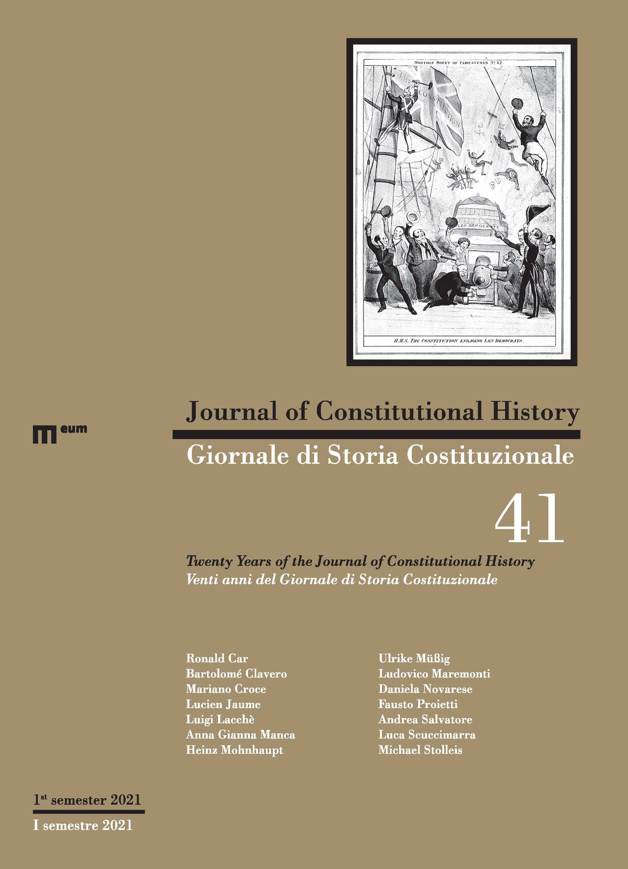 Birgit Aasa, Alessandro Agrì, Filippo Benedetti, Cristina Bon, Ronald Car, Massimiliano Gregorio, Ludovica Di Gregorio, Marie-France Fortin, Xavier Groussot, Luigi Lacchè, Lotta Maunsbach, Giuseppe Mecca, Ulrike Müßig, Andrea Pennini, Raffaella Bianchi Riva, Gian Marco Sperelli, Martin Sunnqvist, Dorota Zabłudowska, Anna ZemskovaVenti anni del Giornale di Storia costituzionale / Twenty Years of the Journal of Constitutional History