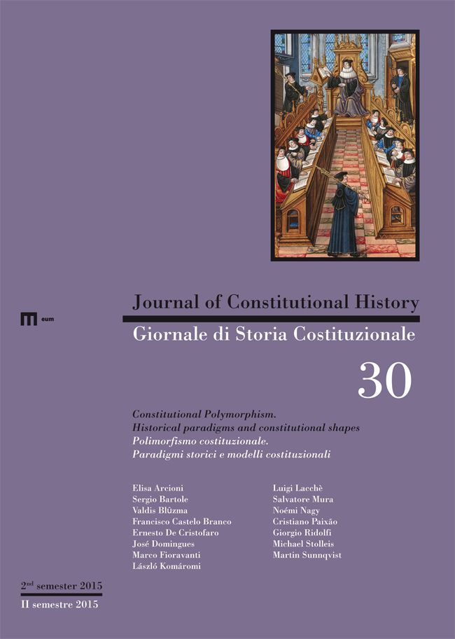 Bruschi Ugo, Chiantera-Stutte Patricia, Francesconi Daniele, Gianello Simone, Griffo Maurizio, Lacchè Luigi, Loughlin Martin, Martinelli Claudio, Prisco Salvatore, Rizzoni Giovanni, Rondini Paolo, Calamo Specchia Marina, Torre AlessandroConstitutional Polymorphism. Historical paradigms and constitutional shapes/ Polimorfismo costituzionale. Paradigmi storici e modelli costituzionali n. 30 / II semestre 2015 Half-yearly journal/Rivista semestrale