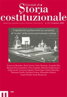 Basilien-Gainche Marie-Laure, Beaud Olivier, Bon Cristina, Caserta Paolo, Falciola Luca, Lacchè Luigi, Martucci Roberto, Merker Nicolao, Mohnhaupt Heinz, Nuzzo Luigi, Patisso Giuseppe, Santoncini Gabriella, Fernández Sarasola Ignacio, Betti-Schiavoni Egle, Sensales AlfredoI regolamenti parlamentari nei momenti di “svolta” della storia costituzionale italianan. 15 / I semestre 2008Half-yearly journal / Rivista semestrale