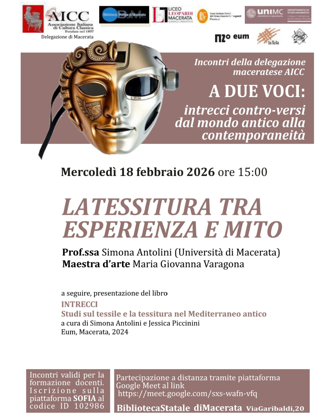 e presentazione del libro “Intrecci. Studi sul tessile e la tessitura nel Mediterraneo antico”, a cura di Simona Antolini e Jessica Piccinini